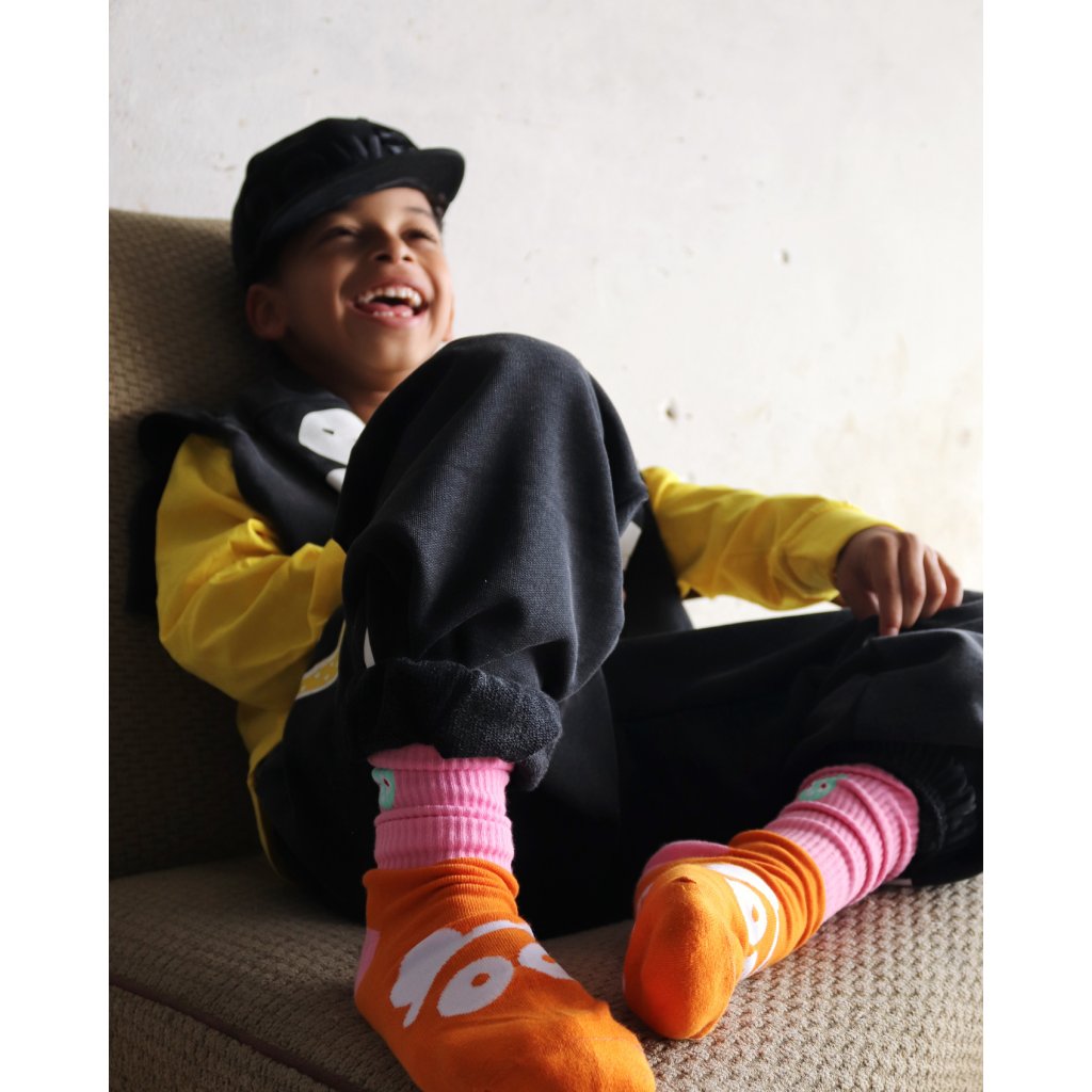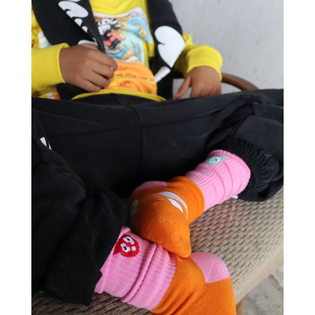There's never enough warmth for socks and feet! That's why we have these higher-knit socks with a thicker terry material and our cool design as a bonus :) They are made from soft and breathable cotton. This composition ensures high fabric quality and durability. You'll find elastic ankle support, reinforced heels, and toes. These socks will provide you with comfort and protection, making them ideal for active children who play all day.